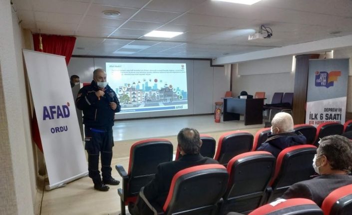 Ordu’da mahalle muhtarlarına ve azalarına afet bilinci eğitimi veriliyor.