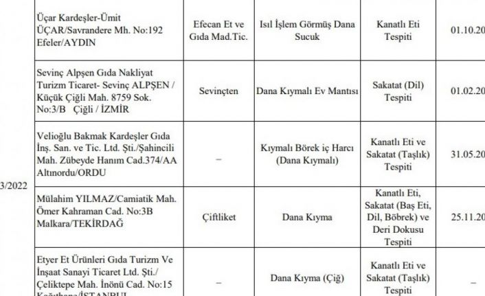 Ulubey ilçesinde bulunan işyerindeki alkollü içeceklerde tersiyer butil alkol, hacmen alkole rastlandı. Altınordu ilçesinde faaliyet gösteren bir işyerinde satılan kıymalı börek içerisinde kanatlı eti ve sakatat (taşlık) tespit edilirken, Gürgentepe ilçesinde üretim yapan bir firmanın ürettiği dil peynirinde ise nişastaya rastlandı.
