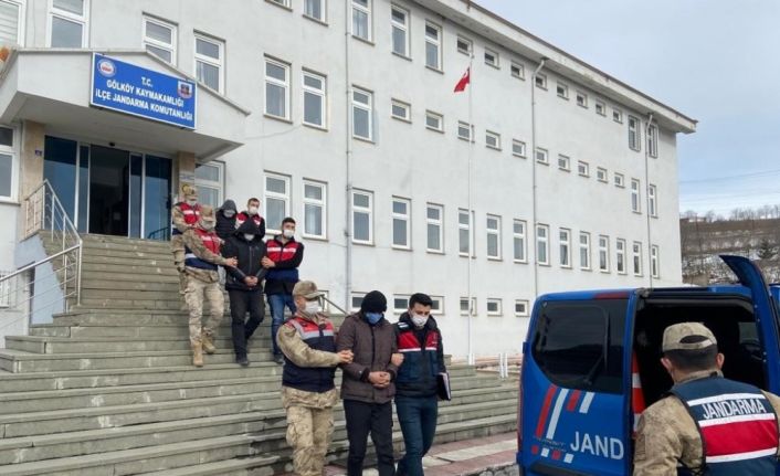 Gölköy ilçesinin Çatak Mahallesi’nde haberleşme ve enerji nakil kablosu hırsızlığı yapıldığı ihbarı alınması üzerine Gölköy İlçe Jandarma Komutanlığı, Suç Araştırma Timi (JASAT), Olay Yeri İnceleme (OYİ) unsurlarınca sıkı bir araştırma yapıldı. Yapılan araştırma neticesinde M.K., N.K. ve B.K. isimli şahıslar bir araç içerisinde yakalandı. Şüpheli şahısların 6 direk arasından yaklaşık 300 metre uzunluğundaki bakır telefon kablosunu özel yöntemlerle çaldıkları, olay yerinden kısa sürede uzaklaştıkları, 5 direk arasında yaklaşık 200 metre kabloya da zarar verdikleri tespit edildi.