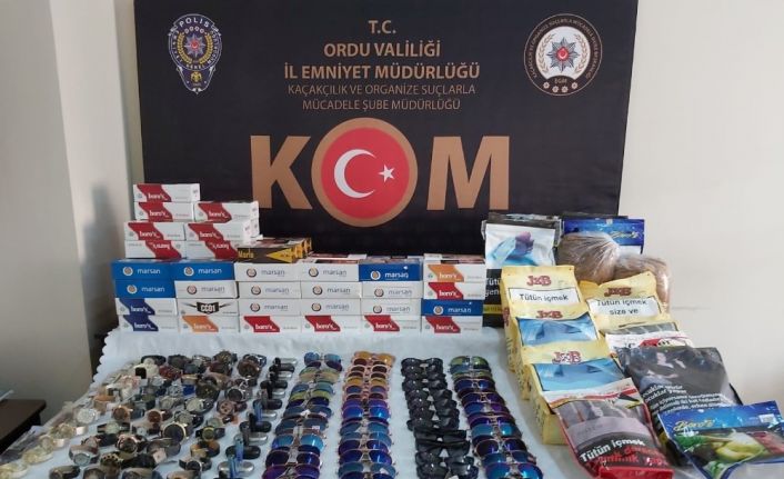 Ordu Emniyet Müdürlüğü Kaçakçılık ve Organize Suçlarla Mücadele Şube Müdürlüğü ekiplerince kaçak tütün ve tütün mamullerine yönelik yapılan saha çalışmaları sırasında Fatsa ilçesinde bir işyerinde arama yapıldı. Yapılan aramada 74 karton içerisinde 14 bin 800 adet bandrolsüz makaron, 2 karton içerisinde 400 adet içi tütün doldurulmuş makaron, 21 kg bandrolsüz kıyılmış tütün, 118 adet kaçak olduğu değerlendirilen kol saati, 90 adet kaçak olduğu değerlendirilen güneş gözlüğü ve 14 adet kaçak olduğu değerlendirilen çakmak ele geçirildi.