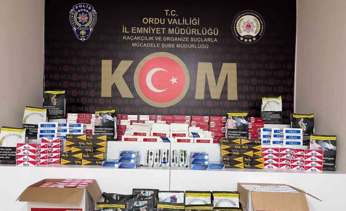 İl Emniyet Müdürlüğü’ne bağlı ekipler tarafından tütün ve tütün mamullerine yönelik yapılan saha çalışmaları dahilinde Altınordu ilçesinde yapılan aramalarda piyasa değeri yaklaşık 60 bin TL olan 172 bin 300 adet boş makaron, 6 bin 800 adet içi tütün doldurulmuş makaron, 25 kilo gram kıyılmış tütün, 91 paket nargile tütünü, 9 adet elektronik sigara ele geçirildi.