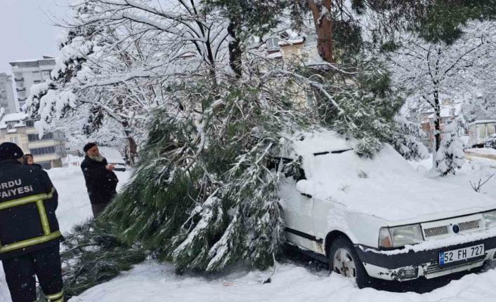 Ordu’da kar yağışı nedeniyle 2 noktada ağaç yıkıldı