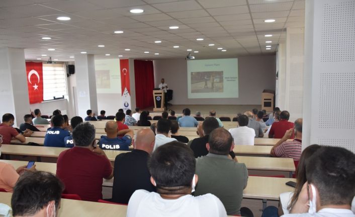 Emniyet mensuplarına verilen eğitim programında yaptığı sunumda Doç. Dr. Taşkın Kılıç empati, etkili dinleme, etkili beden dili kullanımı ve üslup konularında; Öğr. Gör. Dr. Zafer Özkan ise öfkenin nedenleri ve öfke yönetimi konularında dinleyicileri bilgilendirdi.
