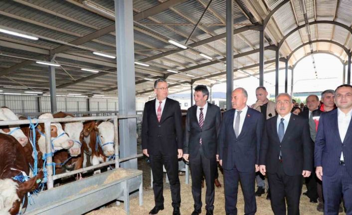 Konuşmaların ardından, kura çekimi yapılarak, Vali Muammer Erol, Büyükşehir Belediye Başkanı Dr. Mehmet Hilmi Güler ve diğer protokol üyeleri tarafından üreticilere gebe düve dağıtımı gerçekleştirildi.