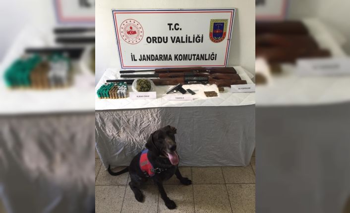 Ordu İl Jandarma Komutanlığı ekiplerince Altınordu ilçesinde adli makamlardan alınan arama kararına istinaden gerçekleştirilen operasyonda 1 şüpheli şahsın ev ve eklentilerinde arama yapıldı. Yapılan aramada 20 gram kubar esrar maddesi, 1 adet ruhsatsız tabanca, 2 adet ruhsatsız av tüfeği, 1 adet faturasız havalı tüfek, 55 adet tabanca fişeği, 62 adet av tüfeği fişeği, 1 adet kasatura ele geçirildi.