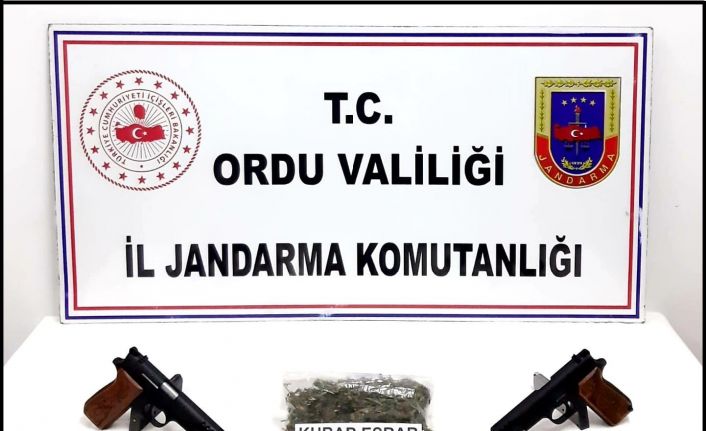 Ordu İl Jandarma Komutanlığı tarafından uyuşturucu madde ile mücadele kapsamında yapılan çalışmalar sonucu Gülyalı ilçesinde yapılan bir operasyonda 150 gram kubar esrar maddesi, 2 adet ruhsatsız tabanca ve 15 adet tabanca fişeği ele geçirildi.