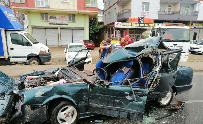 Ordu’nun Ünye ilçesinde meydana gelen trafik kazasında alkollü olduğu iddia edilen bir sürücü ışıkta bekleyen araçlara çarptı. Kazada otomobilde sıkışan sürücü uzun uğraşlar sonucu kurtarıldı.