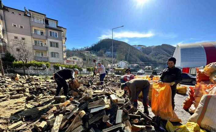 Vatandaşların ve belediye ekiplerinin odun taşıma kesme ve çuvallama işlemi sürüyor.