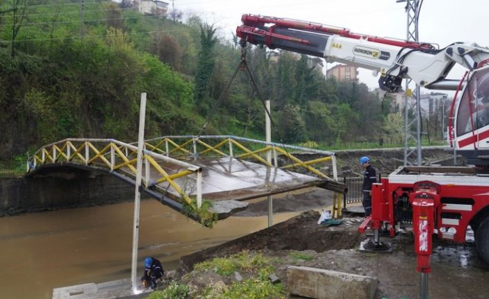 Afetten etkilenerek uç kısımlarından hasar gören çelik araç ve yaya köprüsünün ayakları prekast beton bloklarla güçlendiriliyor. Beton bloklarla tahkimatı yapıldıktan sonra köprü kısa süre içerisinde araç ve yaya trafiğine açılacak. Ekipler akabinde hem üst kısmında 60 metre mesafe uzaklıkta bulunan yaya köprüsünün de onarımı yapacak. Dere yatağında temizlik çalışması başlatan Fen İşleri Müdürlüğü Ekipleri, köprü onarımına da bir hafta içerisinde start verecek.