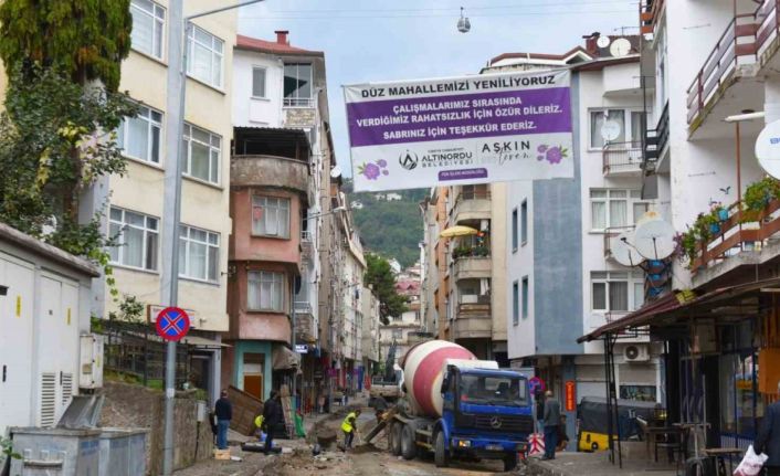 Altınordu Belediyesi tarafından şehir merkezinde yürütülen alt ve üstyapı çalışmaları sürüyor. Çalışmalar çerçevesinde Yeni Mahalle’nin sokaklarında altyapı ve sıcak asfalt çalışmaları devam ederken, sokaklarda ayrıca mineral yüzeyli doğal begonit taş uygulaması da gerçekleştiriliyor. Düz Mahalle’de ise ekipler, gerçekleştirdikleri altyapı yatırımlarının ardından 9 sokağın yollarında sıcak asfalt, kaldırımlarda ise mineral yüzeyli begonit taş uygulaması gerçekleştirecek.