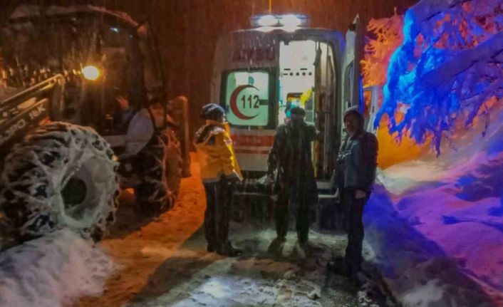Ünye’de karla kaplı yolda ekipler, hasta kadın için seferber oldu