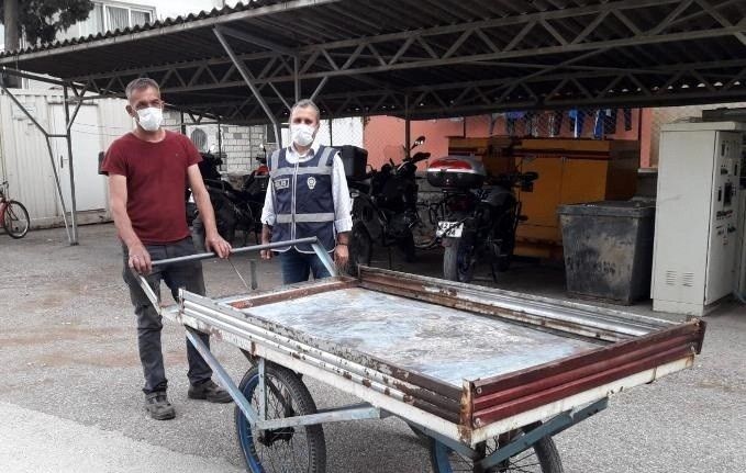 Osmaniye’de 5 kişilik ailesinin geçimini seyyar tabla ile hurda toplayarak sağlayan Yahya O., çalınan ekmek teknesini bulan polislere teşekkür etti.