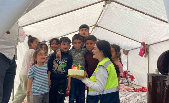 Osmaniye Belediyesi ekipleri, çadırda kalan depremzede çocuklar Hasan ve Ahmet’e doğum günü sürprizi yaptı.