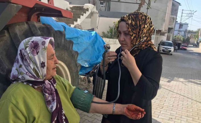 Vatandaşların tansiyon ve şeker ölçümleri yapılırken ilçe genelinde ekipler belirlenen adresleri tek tek ziyaret etmeye devam ediyor.