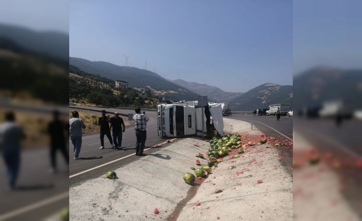 Osmaniye’nin Bahçesi ilçesinde karpuz yüklü kamyonun devrildiği kazada sürücü yaralandı.