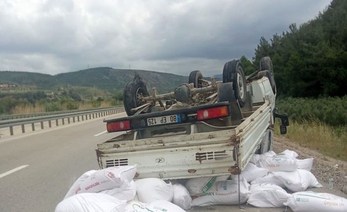 Osmaniye’nin Düziçi ilçesinde lastiği patlayan un yüklü kamyonet takla attı.