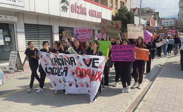 Osmaniye’de bir grup lise ve üniversite öğrencisi, kadına ve çocuğa yönelik şiddeti protesto eden yürüyüş yaptı.