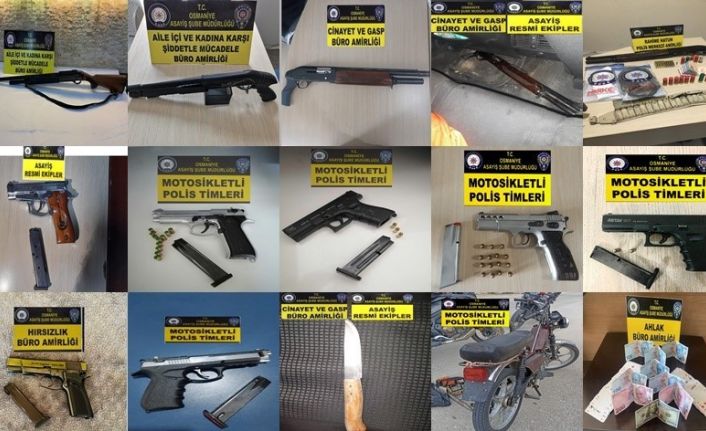 Alınan bilgiye göre, İl Emniyet Müdürlüğü Asayiş Şube Müdürlüğü ekipleri son bir hafta içerisinde şehir genelinde farklı noktalarda oluşturulan uygulamalarda, 79 şahsı yakaladı. Şüphelilerden 5 tüfek, 5 ruhsatsız tabanca, 4 kurusıkı tabanca, 88 tabanca fişeği, 38 tüfek kartuşu, 1 bıçak, 1 çalıntı motosiklet, 52 iskambil kağıdı, 1000 TL ve 100 USD kumar parası, 80 karton, toplamda 800 kaçak sigara, 49.31 gr muhtelif uyuşturucu madde, 6 çalıntı cep telefonu, çuval içerisinde çalıntı tel korkuluk ele geçirildi.