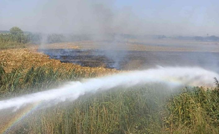 Edinilen bilgiye göre, ilçeye bağlı Karabacak Köyü’nde hasat edilmiş mısır tarlasından dumanların yükseldiğini fark eden çevredeki vatandaşlar durumu 112 Acil Çağrı Merkezi’ne bildirdi.