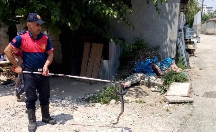 Osmaniye’nin Kadirli ilçesinde bir eve giren yılan itfaiye ekiplerince yakalanarak doğal yaşam ortamına salındı.