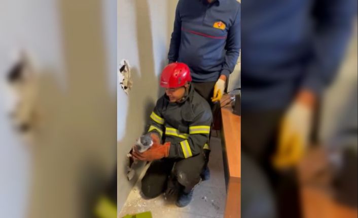 Alibeyli Mahallesi’ndeki Osmaniye Belediyesi Kent Müzesi’nin panel duvarından kedi sesi geldiğini fark eden çalışanlar durumu itfaiye ekiplerine bildirdi. Adrese gelen itfaiye ekipleri yavru kediyi kurtarmak için çalışma başlattı. Ekiplerin duvarı kırmasıyla yavru kedi bulunduğu yerden çıkarıldı.