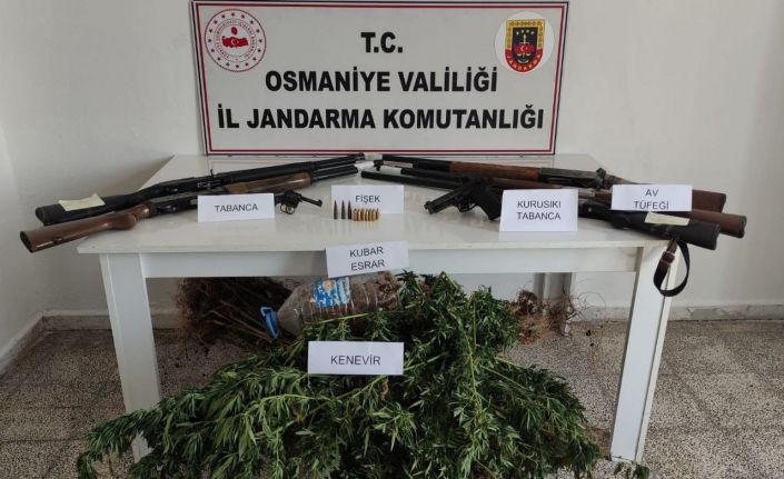 Osmaniye’nin Kadirli ilçesinde düzenlenen uyuşturucu operasyonlarında 1 kilo esrar, 150 kök kenevir ile 7 adet silah ele geçirildi.
