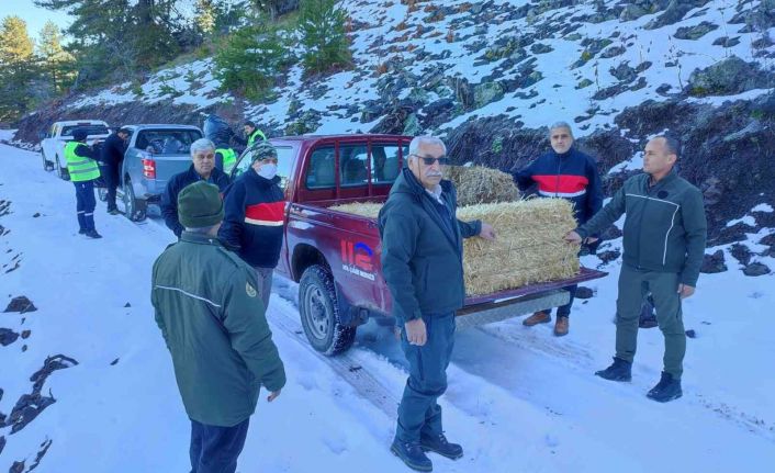 Osmaniye’nin yüksek kesimlerinde etkili olan kar yağışı sonrası yiyecek bulmakta zorlanan yaban hayvanları için Amanos Dağları’na yem bırakıldı.
