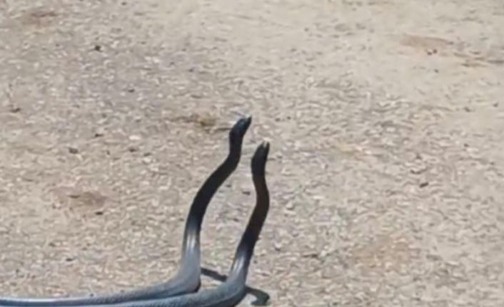 Osmaniye’nin Düziçi ilçesinde yol ortasında 2 yılanın çiftleşme dansı vatandaş tarafından kayıt altına alındı.