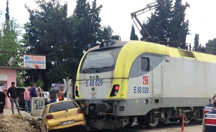 Trenin çarptığı otomobilin sürücüsü yaralandı