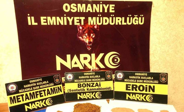 Edinilen bilgiye göre, Osmaniye İl Emniyet Müdürlüğü’ne bağlı Asayiş Şube Müdürlüğü bünyesinde görev yapan mahalle bekçileri rutin devriye sırasında bir şahsın hareketlerinden şüphelendi. Yapılan GBT sorgusunda şahsın A.P. olduğu öğrenilirken yapılan üst aramasında satışa hazır halde paketlenmiş uyuşturucu maddeler ele geçirdi. Narkotik Suçlarla Mücadele Şube Müdürlüğü ekiplerince yapılan incelemede şahsın üzerinden çıkan uyuşturucu maddelerin 22,53 gram bonzai, 9,58 gram eroin ile 1,37 gram metamfetamin olduğu anlaşıldı.