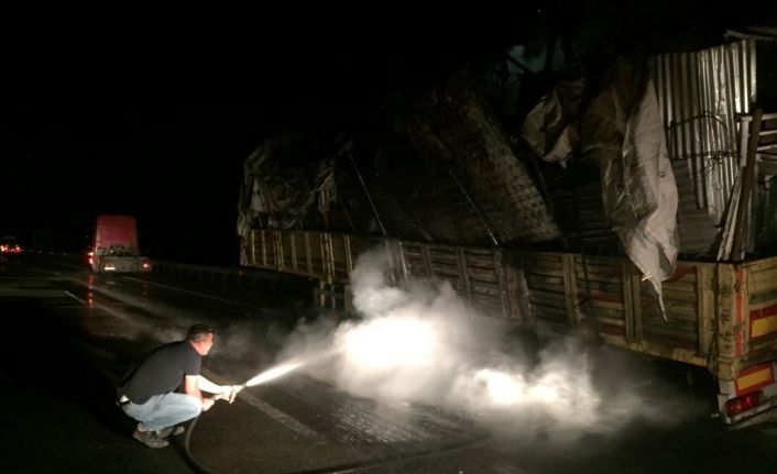 Olay, Tarsus-Adana-Gaziantep (TAG) otoyolunun Osmaniye merkez Mamure Tren İstasyonu civarında meydana geldi. Edinilen bilgiye göre, sürücüsünün ismi öğrenilemeyen hurda yüklü 63 F 4381 plakalı tırın dorsesi seyir halindeyken bilinmeyen bir nedenden dolayı yanmaya başladı. Dorsenin yandığını fark eden sürücü tırı hemen kenara çekti. Dorseyi çekiciden ayıran sürücü ardından durumu itfaiye ekiplerine bildirdi. Kısa sürede olay yerine gelen itfaiye ekipleri yaklaşık bir saatlik çalışma sonunda yanan dorseyi söndürdü. Soğutma çalışmalarının başladığı yangında dorse kullanılmaz hale geldi.