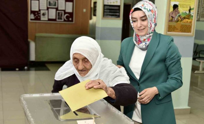 Sabah saatlerinden itibaren vatandaşlar demokratik haklarını kullanmak için sandıklara akın ederken şehrin en yaşlı bireyi olan Güllü Doğan da çocukları ve torunlarıyla geldiği okulda oyunu kullandı.