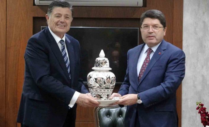 Bakan Tunç ise Başkan Yalçınkaya’ya cezaevlerindeki hükümlülerin yaptığı el işlemeli vazo hediye etti. Hediye karşısında memnuniyetini dile getiren Başkan Yalçınkaya, makam masasının önündeki sehpaya konulmasını isteyince Bakan Tunç ise esprili bir dille, "Ayak altına koyma, yükseğe bir yere koy" ifadelerini kullandı. Başkan Yalçınkaya ise, "Olur mu öyle hiç. Çok önemli bir hediye" diye konuştu.