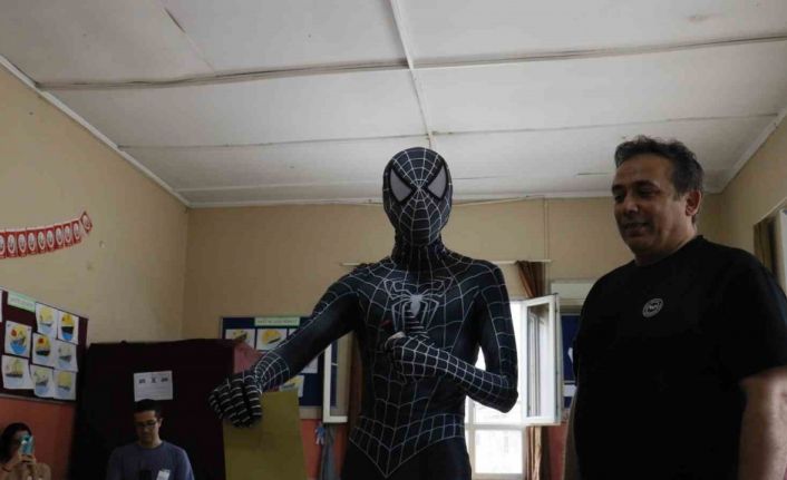 Adana’da bir kişi örümcek adam kostümü giyerek Cumhurbaşkanlığı seçiminde oyunu kullandı. Oy kullandığı okulda çocuklar ve vatandaşlar örümcek adam kostümü giyen Ömer Şaşkın’a yoğun ilgi gösterdi.