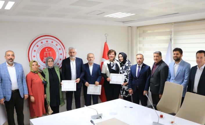 Diyarbakır Adliyesinde düzenlenen törenle birlikte Galip Ensarioğlu, Mehmet Sait Yaz ve Suna Kepolu Ataman mazbatalarını aldı.