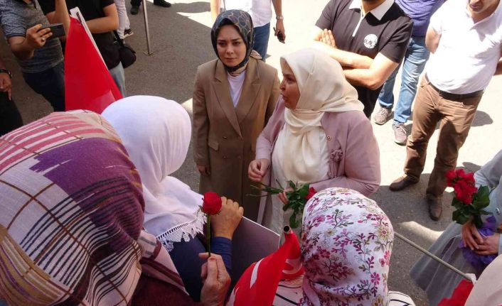 AK Parti Kahramanmaraş Milletvekili Habibe Öçal, HDP Diyarbakır İl Başkanlığı önünde bin 18 gündür evlat nöbeti tutan ailelerle bir araya geldi.