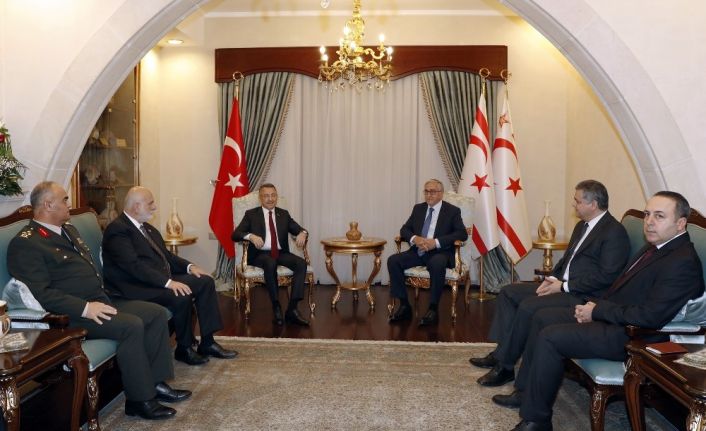 KKTC Cumhurbaşkanı Mustafa Akıncı, KKTC’nin 36. kuruluş yıl dönümü kutlamaları için KKTC’ye gelen Cumhurbaşkanı Yardımcısı Fuat Oktay ve beraberindeki heyeti kabul etti. Fuat Oktay’ın beraberindeki heyette, Türkiye Büyük Millet Meclisi Başkan Vekili Süreyya Sadi Bilgiç, TBMM KKTC Dostluk Grubu Başkanı Orhan Erdem, Kütahya Milletvekili Ahmet Erbaş, Türkiye’nin Lefkoşa Büyükelçisi Ali Murat Başçeri, Türk Silahlı Kuvvetleri İkinci Ordu Komutanı Korgeneral Sinan Yayla, Kıbrıs Türk Barış Kuvvetleri Komutanı Tümgeneral Sezai Öztürk da yer aldı. Görüşmeye ilişkin basına açıklama yapılmadı.