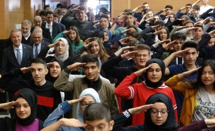 Tarihi Kayseri Lisesinde öğrencilerle buluşan Milli Savunma Bakanı Hulusi Akar, öğrenciler tarafından asker selamı ile karşılandı.