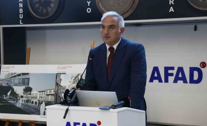 Hatay’a gelen Kültür ve Turizm Bakanı Mehmet Nuri Ersoy, Afet Koordinasyon Merkezi’nde Bilim Kurulu toplantısına katıldı. Toplantısı sonrası açıklamalarda bulunan Bakan Ersoy, "Tarihi merkezleri aslına uygun olarak yeniden canlandırmak, kültürel mirasını ihya etmek, kent kimliğini korumak ve gelecek nesillere aktarmak amacıyla Antakya Tarihi Kent Merkezi Koruma Amaçlı İmar Planı’nı hazırladık. Alanın uzman Bilim Kurulu üyeleriyle iş birliğinde çalışıyoruz. Toplamda 307 hektarlık bölge riskli olarak ilan edildi. Çevre, Şehircilik ve İklim Değişikliği Bakanlığı ile yaptığımız protokol çerçevesinde, sit alanları ve tescilli yapılara ilişkin her türlü plan, proje hazırlama, uygulama ve denetleme yetkisini Kültür ve Turizm Bakanlığı olarak devraldık” diye konuştu.