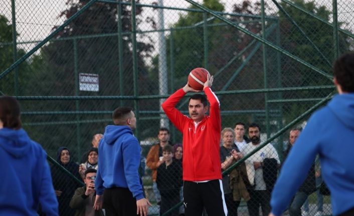 Çevre, Şehircilik ve İklim Değişikliği Bakanı Murat Kurum, Maltepe’de gençlerle basketbol oynadı.