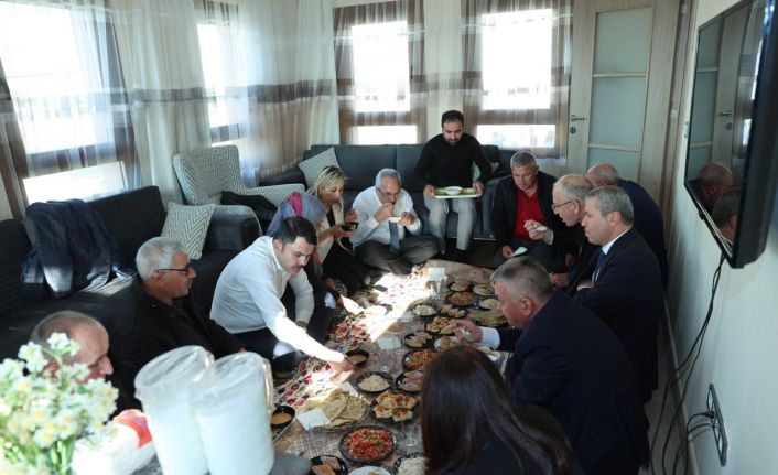 Güzelyalı Mahallesi’nde yangından etkilenen ve yeni evlerine kavuşan Boz Ailesi’nin misafiri olan Bakan Kurum ve beraberindekiler, burada ailenin hazırladığı yer sofrasının konuğu oldu. Ünzile Boz ve eşi Ahmet Boz ile yangın afetinden bugüne yaşanan süreçle ilgili sohbet ettiler.