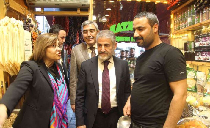 Bir dizi temaslarda bulunmak üzere Gaziantep’e gelen Hazine ve Maliye Bakanı Nureddin Nebati kent merkezindeki tarihi çarşılar bölgesinde esnafı ziyaret etti. Esnaf ziyareti sırasında bir baharatçıya giren Bakan Nebati ile Gaziantep Büyükşehir Belediye Başkanı Fatma Şahin arasında yaşanan diyalog gülümsetti.