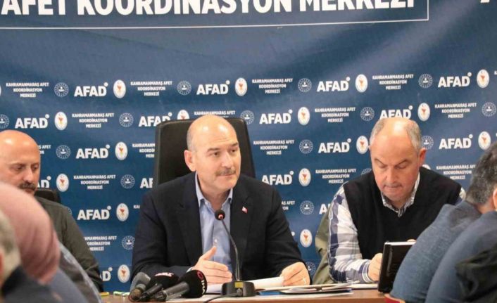 içişleri Bakanı Süleyman Soylu, Kahramanmaraş Afet Koordinasyon Merkezi’nde toplantı düzenledi. İlgili valiler ve kurum müdürlerinden bilgi alan Bakan Soylu, son durum hakkında açıklama yaptı.