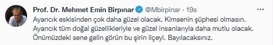 Sinop’ta yaşanan sel felaketinden etkilenen Ayancık ilçesine yönelik sosyal medya hesabından bir açıklama yapan Çevre ve Şehircilik Bakan Yardımcısı Prof. Dr. Mehmet Emin Birpınar, “Ayancık eskisinden çok daha güzel olacak. Kimsenin şüphesi olmasın. Ayancık tüm doğal güzellikleriyle ve güzel insanlarıyla daha mutlu olacak. Önümüzdeki sene gelin görün bu şirin ilçeyi. Bayılacaksınız. Bu köprülerin daha iyi ve güçlüsü yapılacak Ayancık’ta. Ulaştırma ve Altyapı Bakanımız Adil Karaismailoğlu’nun koordinasyonu ile işler çok hızlı ve güçlü ilerlemeye devam ediyor. Selin tüm izleri silinecek. Başka bir güzellik olacak. Kimse merak etmesin. Devlet milletinin her daim yanında” ifadelerini kullandı.