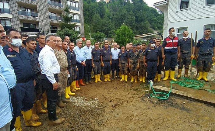 Elektrik ve içme suyu sorununun büyük ölçüde çözüldüğünü kaydeden Bakan Soylu “Özellikle şu anda ilk başta 200’ün üzerinde trafoda maalesef elektrik verilemiyor idi, şu anda bu tamamen ortadan kalktı elektrik her tarafa verilebiliyor. Su konusunda yine birçok alana su verilemiyor idi, şu anda sadece Büyükköy’de o da, yüzde 10’luk bir kesim var. Zannediyorum çok kısa bir süre içerisinde onlara da su verilmiş olacak. Bir taraftan özellikle hasar tespit çalışmaları devam ediyor. Hasar tespit çalışmalarında zarar gören konut, işyeri, araç gibi vatandaşlarımızın ilk etapta hem AFAD’dan hem de Aile Bakanlığından yardım niteliğinde bir destek yaptık. Bir taraftan Defterdarlık diğer konularla beraber toplam hasarı tespit etmeye çalışıyor. Bunun yanı sıra şu ana kadar hem Çevre Şehircilik Bakanlığımızda hem AFAD’dan hem de Aile ve Sosyal Politikalar Bakanlığından toplam 17,5 milyon liralık ilk etapta bir nakit desteği geldi. Onlarda gerek İl Özel İdare olsun, gerek yerel yönetimler olsun gerekse vatandaşlarımız olsun intikal ettiriliyor. Yine bunun yanı sıra hasar tespit çalışmaları devam ediyor. Hasar tespit çalışmalarında da şu anda Çevre ve Şehircilik Bakanlığımızın ve AFAD’ın 50 ekibi şu anda sahanın her tarafında gerek arazideki heyelanları gerek evlerde ve ahırlarda oluşan hasarları gerek köprü, yol ve Karayolları ekipleriyle beraber yine dere yataklarında DSİ’leriyle beraber buradaki hasarların tamamı bir vesile ile hasar tespiti yapılarak devam ediliyor. Hem nitelik açısından hasarlara hem nicelik açısından hasarlara bakıyoruz ve neler yapmamız gerektiğinin adımlarını atıyoruz. Tarım hasarları var, kayan çaylıklar var, heyelana uğrayan çaylıklar var. Ciddi alt yapı hasarları var. Şuna şükretmek lazım. Daha önce yapılan dere ıslahları, daha önce yapılan alt yapılar, daha önce alınan tedbirler özellikle bu selin ve heyelanın daha fazla hasar oluşturmasını engelledi. Bu bizim sahada müşahede ettiğimiz önemli tespittir. Yapılan tahkimatlarda biraz daha seviyeyi yükseltmemiz gerektiği yönünde bir tespitimiz var. Yağışın miktarı sürekli arttıkça, yukarıdan gelen rusubatın miktarı sürekli arttıkça derelerin önemli bir bölümü kaya ve rusubatla dolu halde. Bunların DSİ tarafından temizlenmesi lazım. Daha yoğun yağışlar daha büyük hasarlara sebebiyet teşkil edebilir. Bunun için gerek dere yatakları ile ilgili gerek heyelana gerekse afete maruz bölgelerle ilgili çalışmalarımız ve arama kurtarma çalışmalarımız da devam etmektedir” diyerek çalışmalara katılan tüm ekiplere ve afete maruz kalmasına rağmen sabır gösteren yöre halkına da teşekkür etti.