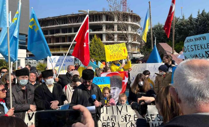 Bursa’da yaşayan Ukraynalı ve Bursalılar Rusya’yı protesto etti.