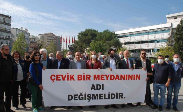 Basın açıklamasını yapan aynı zamanda Konak Kent Konseyi Başkanı Ege Kent Konseyleri Birliği Dönem Sözcüsü Hamit Mumcu, “Çevik Bir adı, 12 Mart döneminde işkence ile anılmıştır. Çevik Bir, 12 Eylül döneminde Genelkurmay Başkanı Kenan Evrenin özel kalem müdürü idi. Evren Cumhurbaşkanı olduğunda başyaveri oldu. Tüm darbe dönemlerinde görev üstlenmiş, işkencelere katılmış bir kişinin İzmir’de önemli meydanlardan birinin adını taşımaması gerektiğini düşünüyoruz. Bu coğrafya artık barış ve demokrasi ile anılmalıdır. Bu nedenlerle İzmir Büyükşehir Belediyesi’nin Çevik Bir Meydanının adını değiştirmesini talep ediyoruz” diye konuştu.