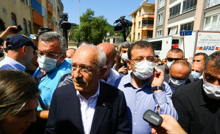 Cumhuriyet Halk Partisi (CHP) Genel Başkanı Kemal Kılıçdaroğlu, sel felaketinin yaşandığı Kastamonu’nun Bozkurt ilçesinde incelemelerde bulundu. İstanbul Büyükşehir Belediye Başkanı Ekrem İmamoğlu ile incelemelerde bulunan Kılıçdaroğlu, İçişleri Bakanı Süleyman Soylu’dan da bilgi aldı. Afet bölgesinde incelemelerde bulunduktan sonra bir açıklama yapan CHP Genel Başkanı Kemal Kılıçdaroğlu, “Sel felaketinin en büyük tahribatı açtığı Bozkurt’tayız. İçişleri Bakanı ile görüştük kendisi de bazı bilgiler verdi. Kendilerine ihbar olarak gelen kayıplar var. Son rakam konusunda biz zamanı geldiğinde veriler elimize ulaştığında kamuoyunu bilgilendiriyoruz diye söylediler. Belediye Başkanı ile de görüştük. Bozkurt Belediye Başkanlığına elimizden gelen her türlü yardımı yaptığımız bir talepleri olduğunda da bu taleplerini süratle karşılayacağımızı, Belediye Başkanlarımızın burada olduğunu ve özellikle İstanbul Büyükşehir Belediye Başkanı son girdiğimiz sokağı tamamı ile teslim aldı. Orayı bir şekilde kullanılabilir hale getireceğini söyledi Ekrem Bey. Değerli arkadaşlar felaketten sonra önlem almak hepimizin görevi. Önemli olan felaketin geleceğini bilerek önlem almaktır. 2019 yılında bu bölge için taşkın sel raporu hazırlanmış. 2019’da bu bölgede ciddi taşkının geleceğinin bilindiği halde ciddi bir önlem alınmaması devletin iyi yönetilmediği anlamına gelir. Ben Belediye Başkanına da ilettim dere yatağında yapılaşmaya izin vermemek lazım. Dere kenarına yapılaşmaya izin verirseniz, az önce ifade ettiler 8 katlı bir bina çökmüş, onu yanında bir yurt binası var o çökmüş, onun yanında bir bina daha var onlar hasar görmüş. Bu selin geldiği belli, bu yağmurun geldiği belli. Yüz yıllardır bütün Karadeniz bunu yaşıyor. Peki nasıl olurda bu gerçekler bilindiği halde dere kenarlarına yapılaşma izni verilir? Bu çok acı bir şey bundan ders çıkarmalıyız” ifadelerini kullandı.