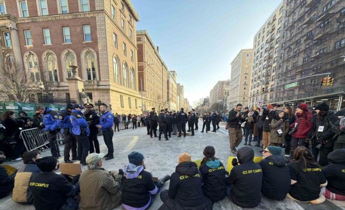 ABD’de Trump yönetiminin Göçmenlik ve Gümrük Muhafaza Birimi’ne (ICE) yönelik uygulamalarına tepkiler sürerken, New York’taki Columbia Üniversitesi öğrencileri de kampüs önünde geniş katılımlı bir protestoya imza attı. Soğuk havaya rağmen yüzlerce öğrencinin katıldığı gösteride, üniversite yönetiminin ICE ile iş birliği yaptığı iddiaları gündeme getirildi. Protestocular, Columbia Üniversitesi’nin öğrenci ve akademik topluluğu korumakta yetersiz kaldığını savundu. Üniversite önünde toplanan öğrenciler, "ICE OUT" yazılı pankartlar taşıyarak ICE aleyhine sloganlar attı. Gösteri boyunca "ICE’ı kapatın" çağrıları sık sık tekrarlandı. Protestocular, Trump yönetiminin göçmenlik politikalarının kampüsler üzerinden meşrulaştırılmaya çalışıldığını ileri sürdü.