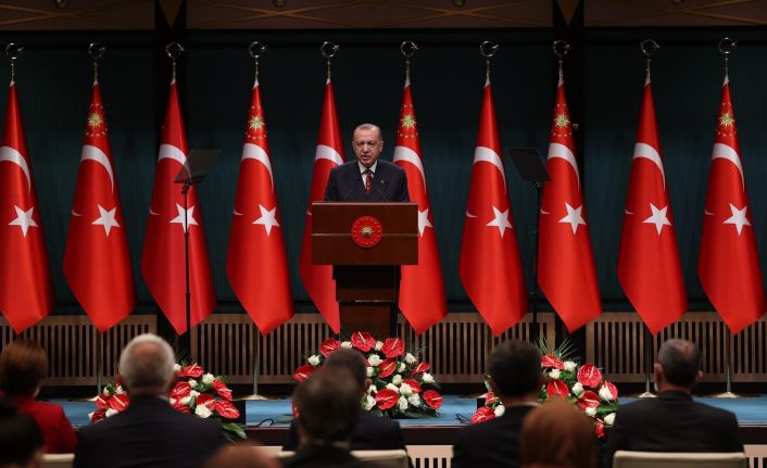Cumhurbaşkanlığı Kabinesi Toplantısı sonrasında kameraların karşısına geçen Cumhurbaşkanı Erdoğan, salgın, ekonomi ve ulaştırma yatırımlarına ilişkin önemli açıklamalarda bulundu. Türkiye’nin salgın sonrası kontrollü normalleşme sürecinin başarıyla yürüdüğünü söyleyen Erdoğan, yapılan toplam aşı sayısının 59 milyona ulaştığını kaydetti. Virüsün yeni varyantlarının dünyayı tehdit ettiğini ve Türkiye’nin hem sağlık sisteminin gücü hem de aşılama oranları ile nispeten iyi bir noktada olduğunu söyleyen Erdoğan, “Tüm vatandaşlarımı, kendilerinin ve sevdiklerinin sağlığı için bayrama kadar aşılarını yaptırmaya davet ediyorum. Aşılamanın nispeten düşük olduğu yerler önümüzdeki günlerde tehdit altına girebilir. Ciddi gayretler ve fedakarlıklar neticesinde elde ettiğimiz bu avantaja hep birlikte sahip çıkmak mecburiyetindeyiz. Kamu kurumlarımız başta olmak üzere insanların kalabalık olarak bulunduğu her yerde kurallara riayet etmek çok önemlidir. Bayram günlerini kurallara uyarak geçirmeliyiz. Aynı sıkıntılara düşmemek için tedbiri elden bırakmamalıyız” diye konuştu.